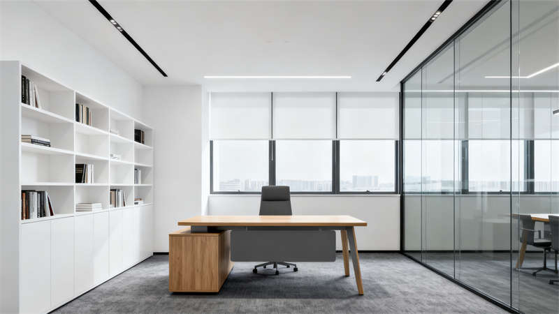 本設(shè)計(jì)圍繞現(xiàn)代簡(jiǎn)約風(fēng)格展開,整體色調(diào)以中性色為基底,搭配低飽和度的輔助色彩,營(yíng)造出沉穩(wěn)且富有活力的辦公氛圍,與合肥這座城市兼具文化底蘊(yùn)與現(xiàn)代氣息的特質(zhì)相契合。?